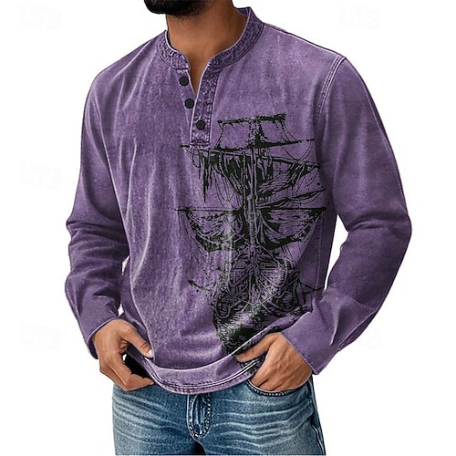 Per uomo Barca a vela Maglia Henley Manica Lunga Vintage Carino Quotidiano Casuale Ferie Uscire Primavera Autunno Blu Grigio Viola Cachi Colletto Henley Henley Maglietta Henley