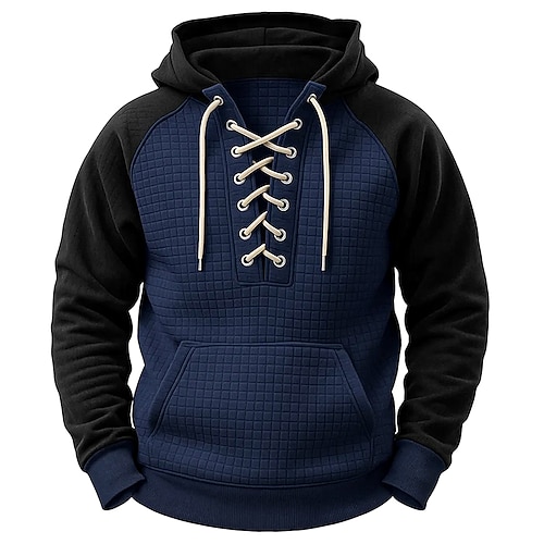 Per uomo Felpa con cappuccio Maglia Felpa a nido d'ape Maglione Verde militare Blu marino Blu Cachi Grigio Con Cappuccio Semplice Allacciato Patchwork Sport Outdoor Casuale Quotidiano Streetwear