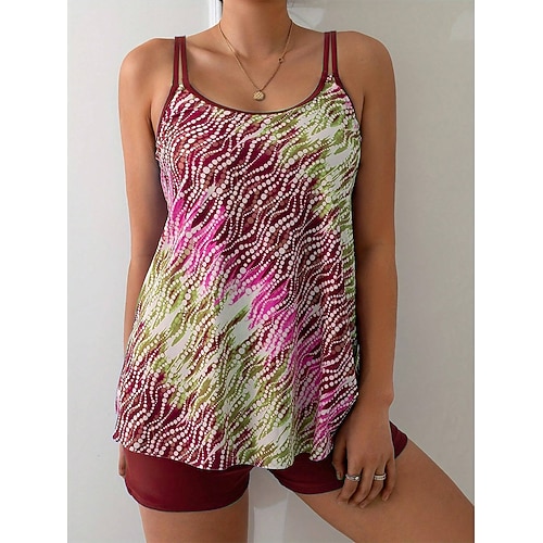 WOMEN'S TANKINI 2 PEZZI COSTUME DA BAGNO ALTA VITA SENZA SCHIENA VACANZA AL MARE STAMPA GRAFICA OMBRE COLLETTO A U SENZA MANICHE