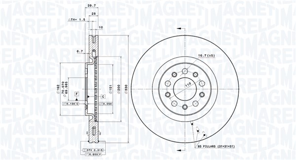 MAGNETI MARELLI Bremsscheibe 360406011701 vorne rechts links innenbelüftet-Belüftung mit tropfenförmigen Flügeln Ø330mm 330mm für ALFA ROMEO JEEP (GAC