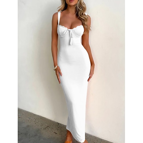 Per donna Abito Midi Abito Bianco Abito da laurea Abito aderente Elegante Moda Moderno All'aperto Vacanza Feste Vestibilità regolare Semplice Senza Maniche Spalline Nero Bianco Estate Primavera