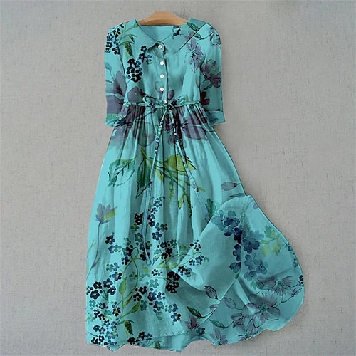 Per donna Abito Midi Abito Camicia Vestito Casual Moda Moderno Quotidiano Ferie Weekend Vestibilità regolare Floreale Manica 3/4 Colletto a Camicia Rosa Cachi Estate Primavera Autunno