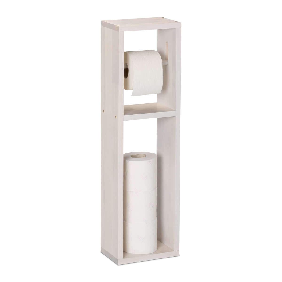 Relaxdays Toilettenpapierhalter, Walnussholz, Wandmontage oder stehend, Ersatzrollenhalter HxBxT: 70 x 20 x 13 cm, weiß