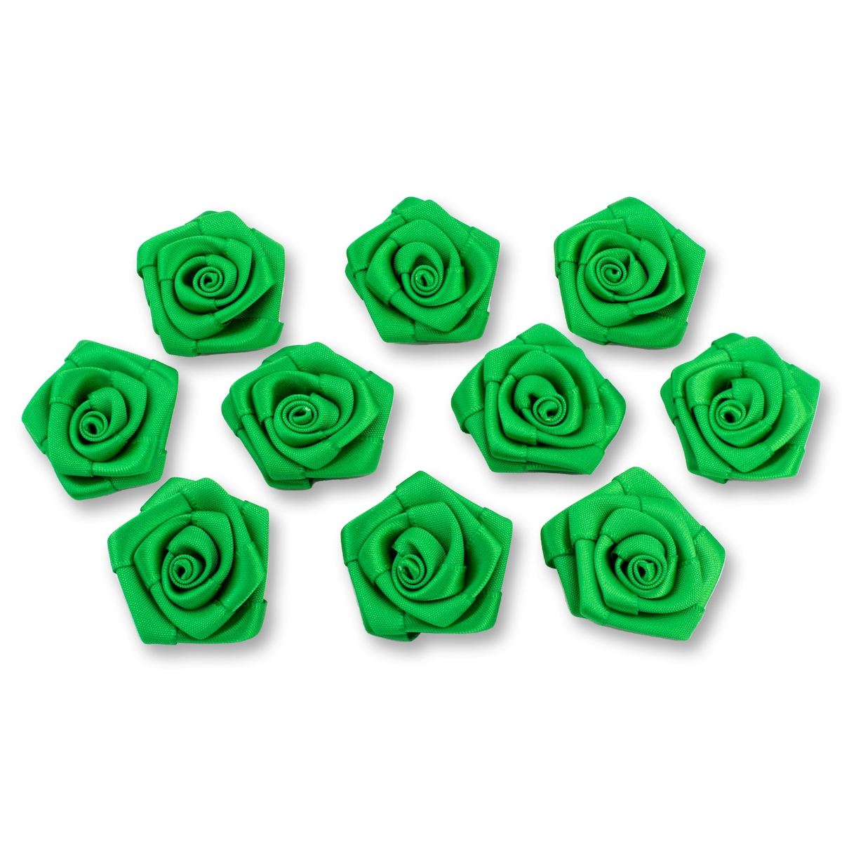 Creativery Satinrosen 3cm 10 Stück Stoffblumen zum Basteln Dekorieren Hochzeit Geschenkverpackung Blütendeko Tischdeko Handarbeit Stoffrosen Deko Blume Grün