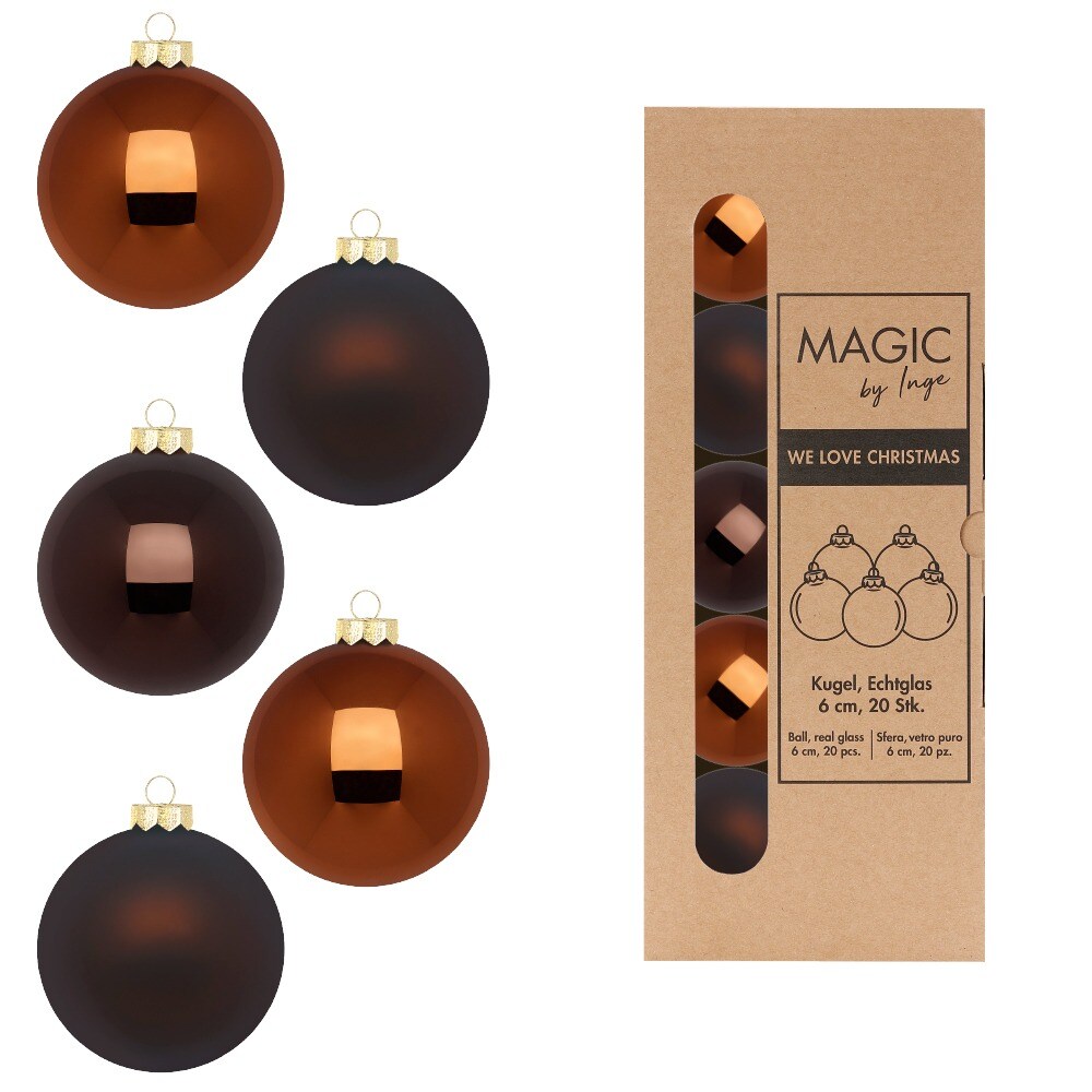 20 Weihnachtskugeln 6cm Glas Christbaumkugeln Weihnachtsbaumkugeln Set braun Mix