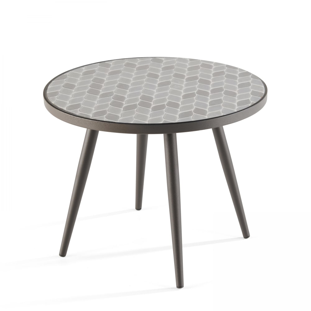 Tavolino da giardino rotondo in acciaio nero con piano in ceramica