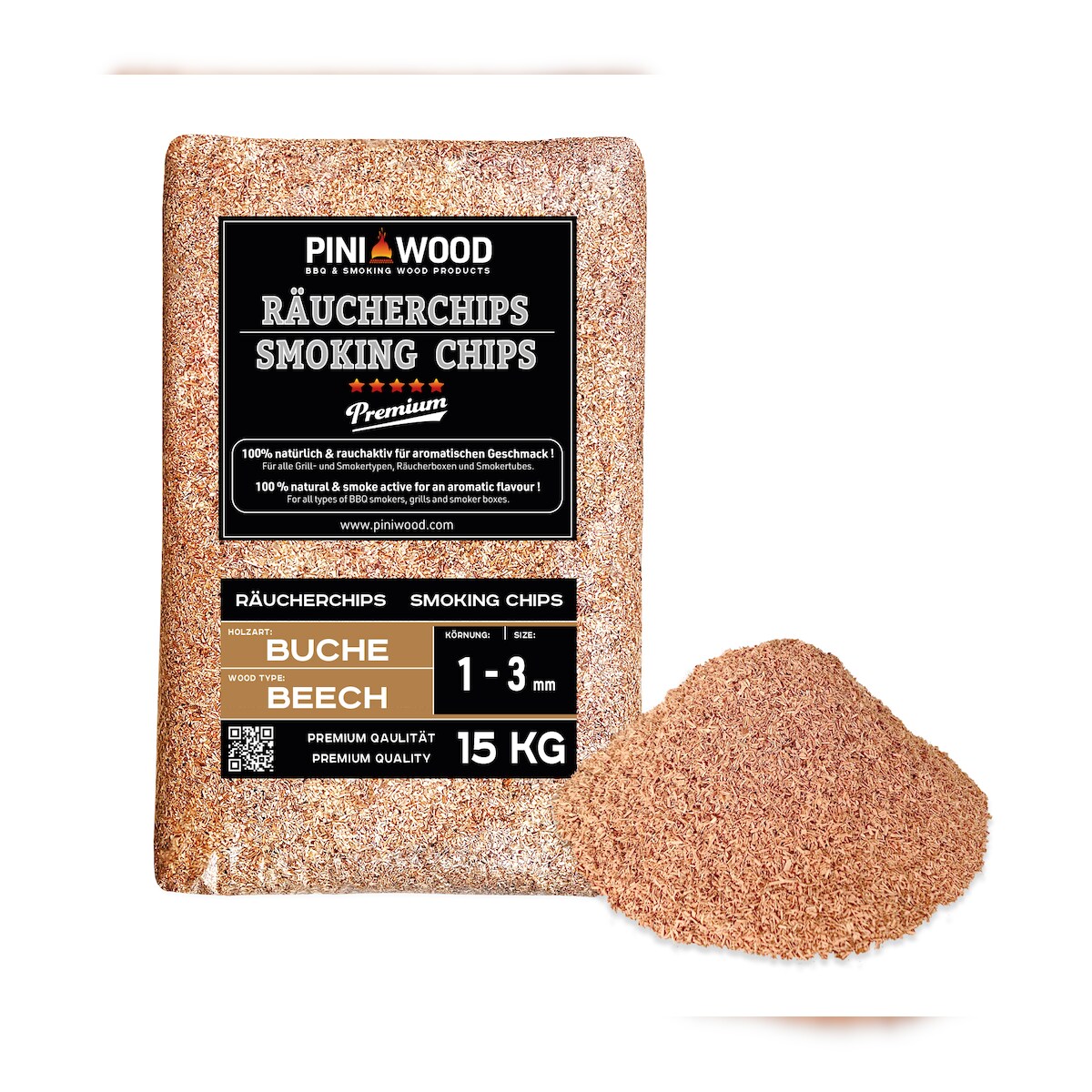 PINI 15 kg Räucherchips Buche 1-3 mm Smoking chips Räucherspäne