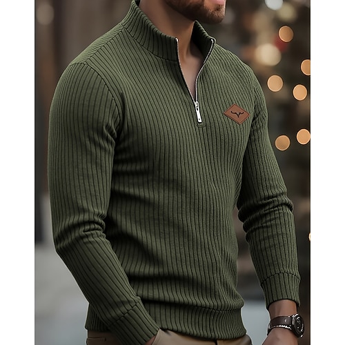 Per uomo Polo Polo con zip a un quarto All'aperto Vacanza Zip a un quarto Manica Lunga Moda Essenziale Semplice Jacquard Autunno Inverno Vestibilità su misura Verde Polo