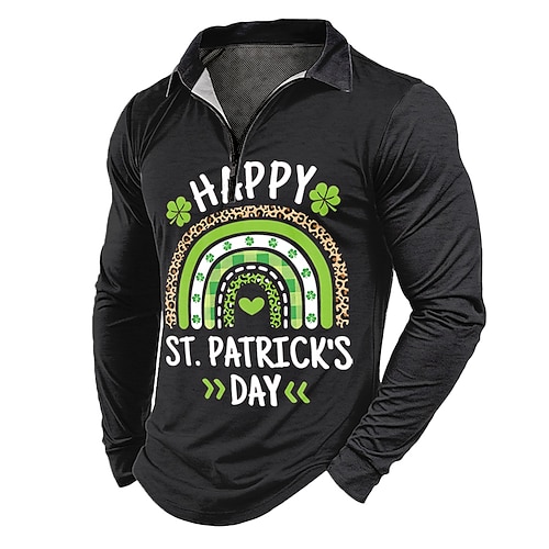 San Patrizio Per uomo Quadrifoglio Polo Manica Lunga Magliette polo Bavero Casual Abbigliamento quotidiano Abito da festa Stampa 3D Polo con cerniera a un quarto Primavera Autunno Inverno Nero Rosso