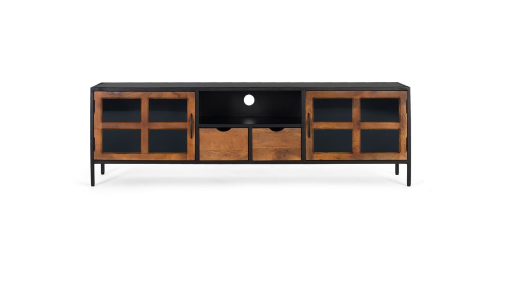 Meuble TV avec 2 portes et 2 tiroirs en verre fait main
