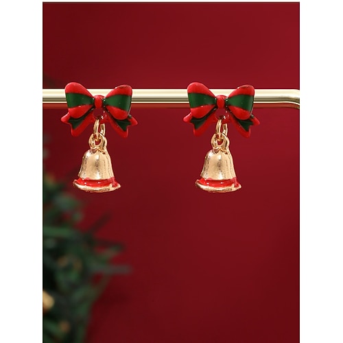 orecchini natalizi da donna a forma di bastoncino di zucchero con campanellini e fiocco, gioielli festivi per feste di Natale e regali