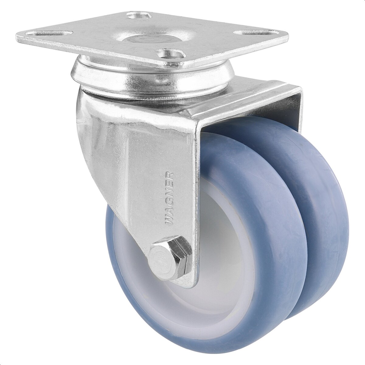 WAGNER Soft-Lenk -Doppelrolle ECO - Ø 75 mm, Stahl verzinkt, blau/weiß, Anschraubplatte, Tragkraft 100 kg - 03157701