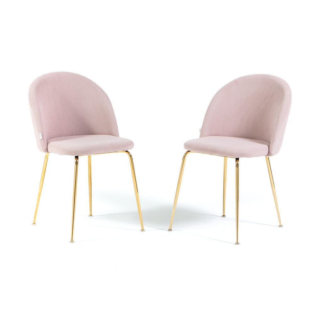 RATTATAN Set aus 2 Innenstühlen aus Cordsamt mit Metallbeinen, gepolstert, ideal für Küche, Esszimmer, Bar oder Restaurant – Sara – Rosa/Gold