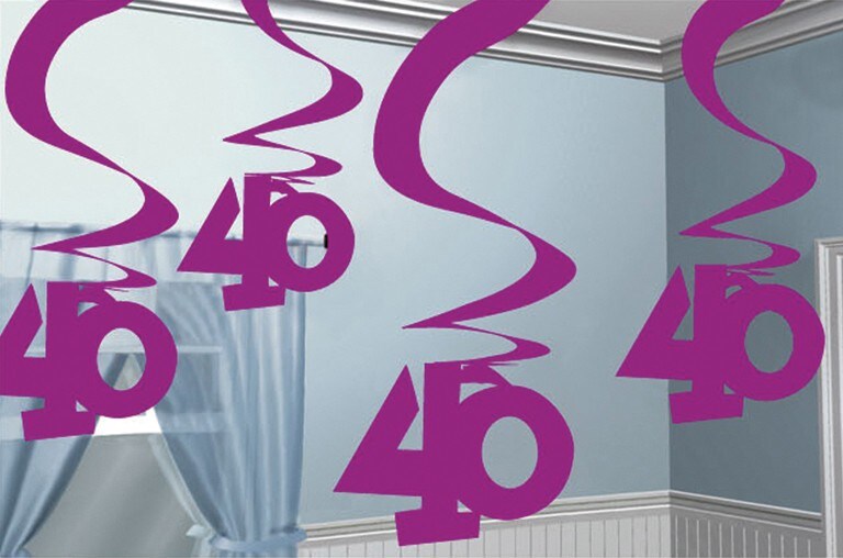 5 Swirl Girlanden 40. Geburtstag `Pink Shimmer`