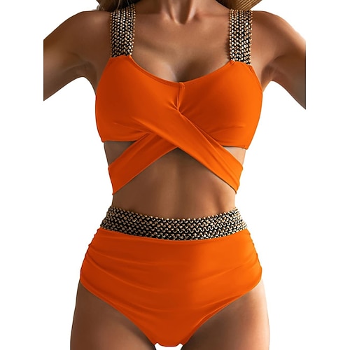 Costume da bagno bikini da donna in 2 pezzi sexy cutout slip slim schiena scoperta estate in spiaggia colore solido scollo a V senza maniche