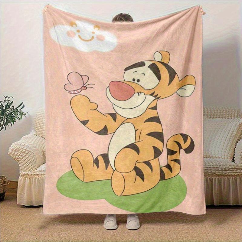 1pc Tigger Blanket Cute Cartoon Tiger Stuffed Animal for Room Decor, Soft Blanket Gift for Friends, Bedding, Living Room, Travel, Camping, Car