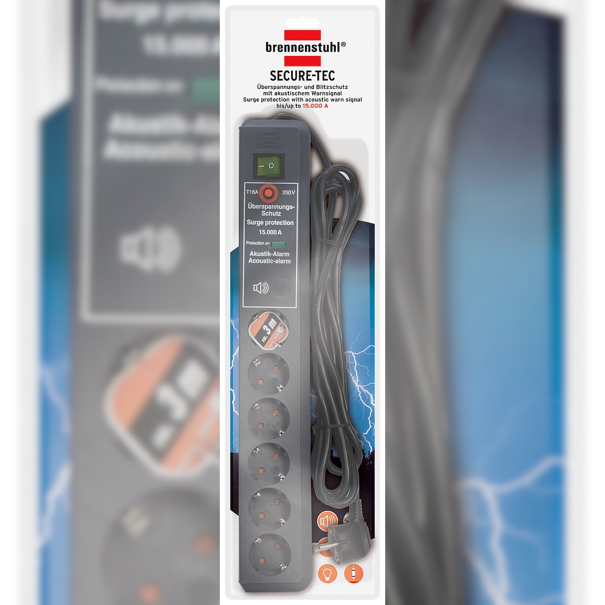 Brennenstuhl ÜSS Secure-Tec Akustik, 6-fach, anthrazit, 3 m