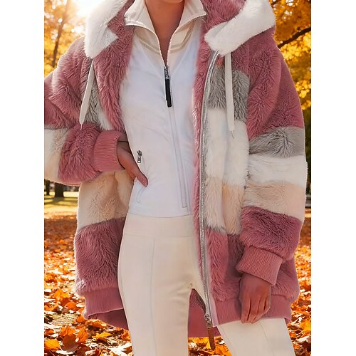 Per donna Giacca in pile Cappotto teddy Giacca con cappuccio Tenere al caldo Traspirante Cerniera Tasche In pile Informale Banda Da mare Strada Da tutti i giorni Per uscire Cerniera Standard Felpa