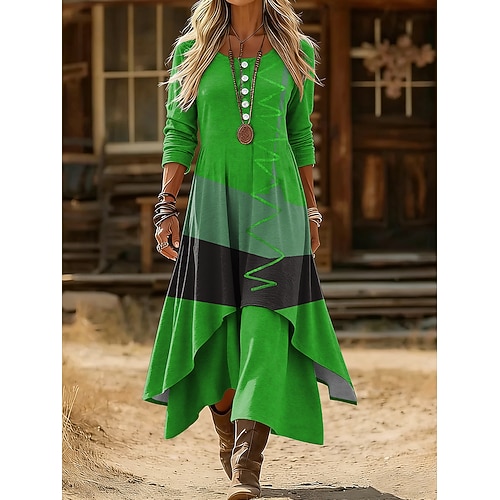 Per donna Abito Midi Abito a Tubino Casual Quotidiano Ferie Vestibilità regolare Grafico Geometrico Manica Lunga Girocollo Blu Giallo Rosso Viola Primavera Inverno