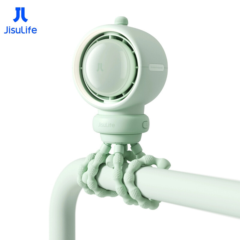 JisuLife Life2S Kinderwagen-Ventilator - 5000 mAh, mit flexiblen Beinen, Schreibtisch, Kinderwagen, mit Filter, grün