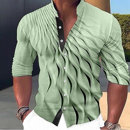 Per uomo Matrimoniale Camicia Camicia con Bottoni Manica Lunga Moda Streetwear Designer All'aperto Casuale Quotidiano Estate Primavera Autunno Collo alla coreana Stampato Blu-verde Verde oliva Verde
