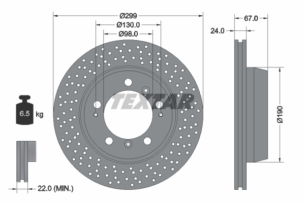 TEXTAR Bremsscheibe PRO+ 92176705 hinten rechts links Gelocht 299mm für PORSCHE 98735240300 98635240301 98735240301