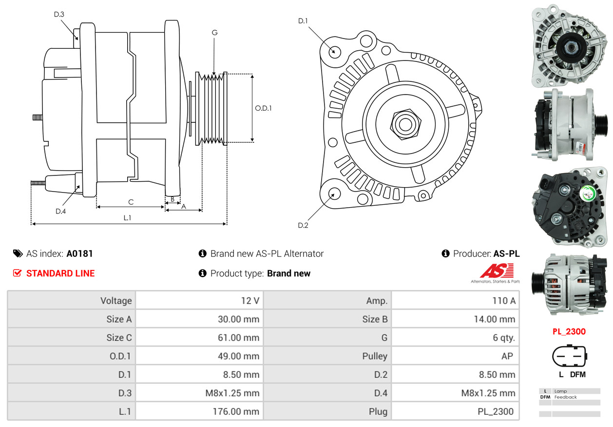 AS-PL Generator A0181 12V 110A für VW 3C903023BX 3C903023DX 03C903023