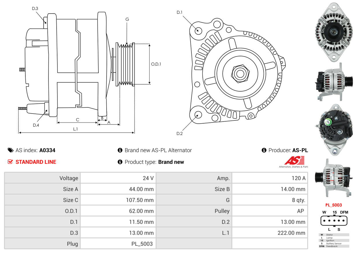 AS-PL Generator A0334 Universal 24V 120A für VOLVO 21429791 22218392 20770016