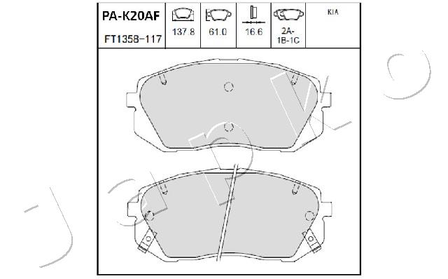 JAPKO Bremsbelagsatz, Scheibenbremse vorne rechts links für HYUNDAI KIA 58101-2SA50 58101-2SA70 58101-E6A10 50K20