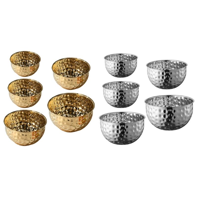 Bol à salade élégant finition martelée en acier inoxydable 304 anti-rouille Plats de service Idéal pour la maison et le restaurant argenté
