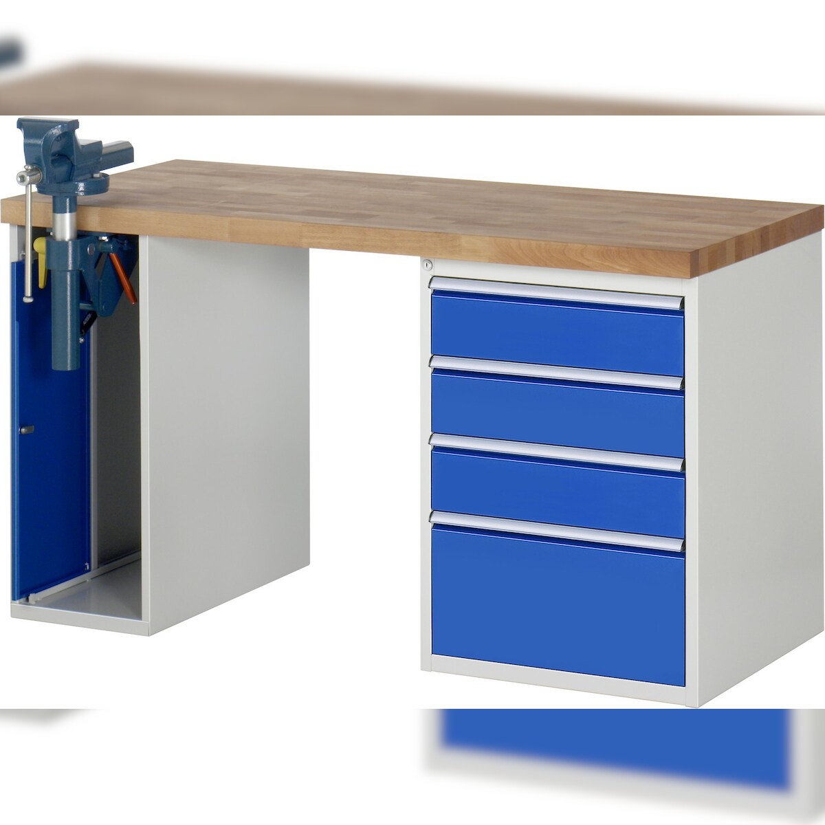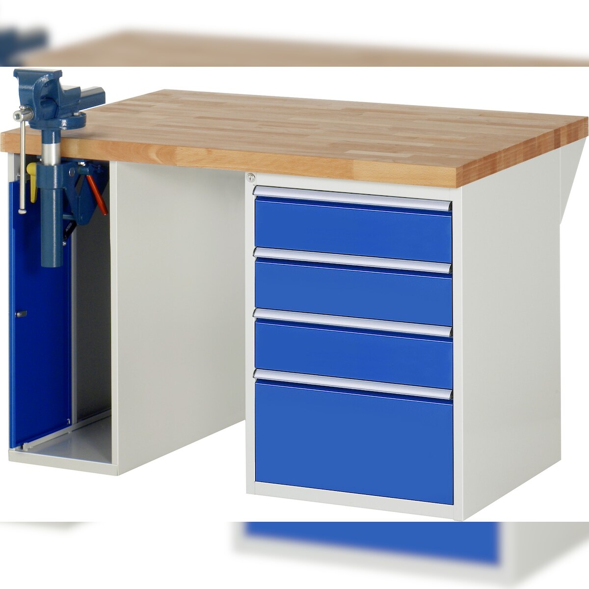 PROREGAL Werkbank Serie 7000 - Modell 7510 | HxBxT 89x125x90cm | 4x Schublade + 1x Schrank inkl. SchPROREGALbstock | Schubladenmaße 3x150 + 1x270mm