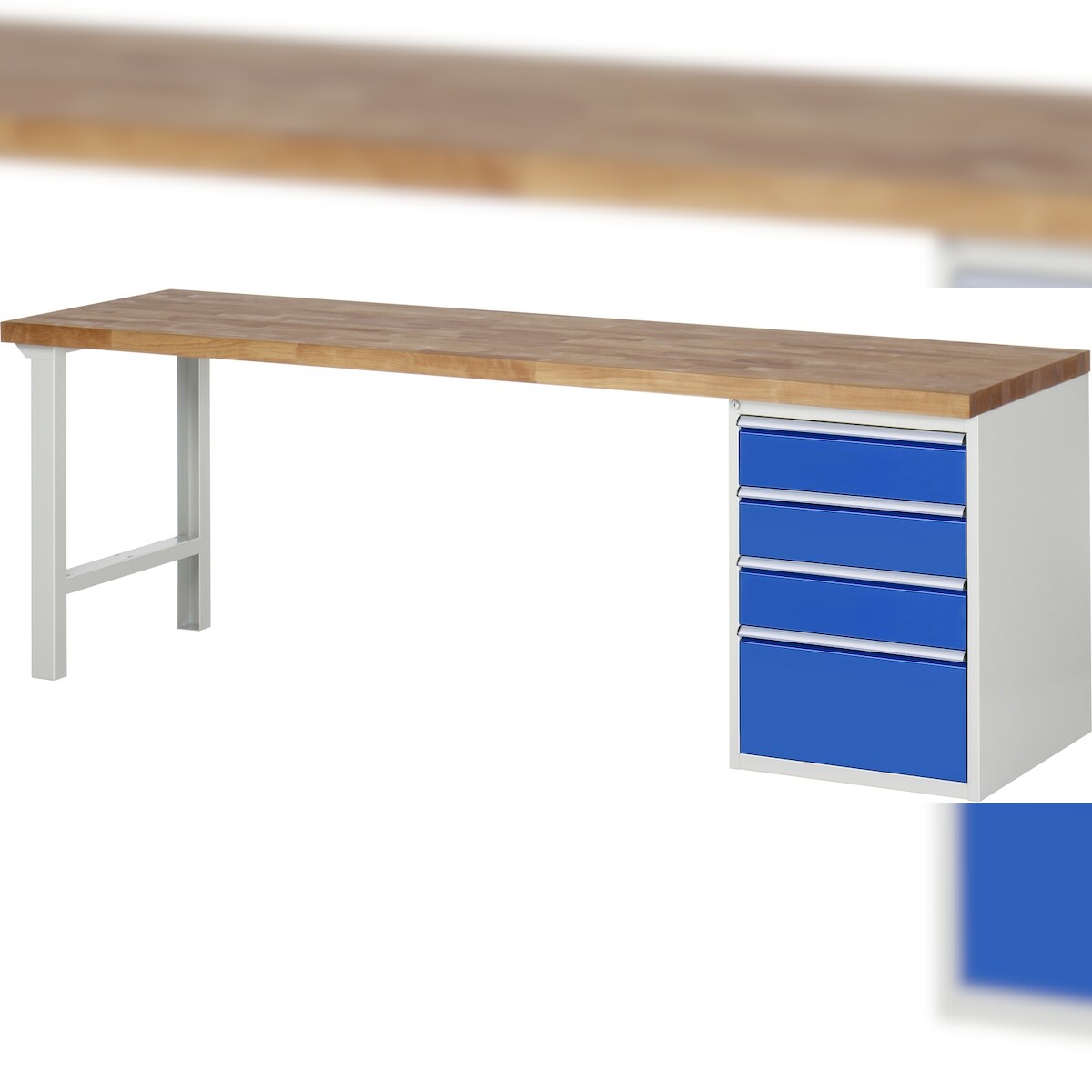 PROREGAL Werkbank Serie 7000 - Modell 7510 | HxBxT 84x250x90cm | 4x Schublade | Schubladenmaße 3x150 + 1x270mm | Lichtgrau | Arbeitstisch Werktisch
