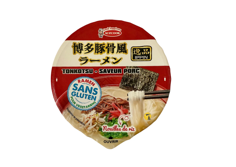 ACECOOK IPPIN Instant Ramen Noodle Bowl, Tonkotsu Flavor (63g)