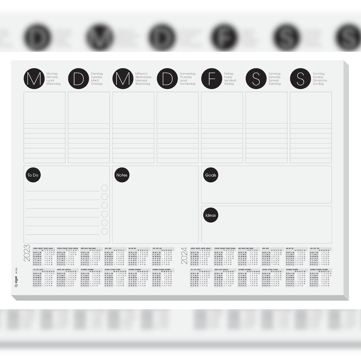 Sigel HO506 Papier-Schreibunterlage A3 mit 2-Jahres-Kalender, Wochenplaner, To-Do-Liste, 30 Blatt