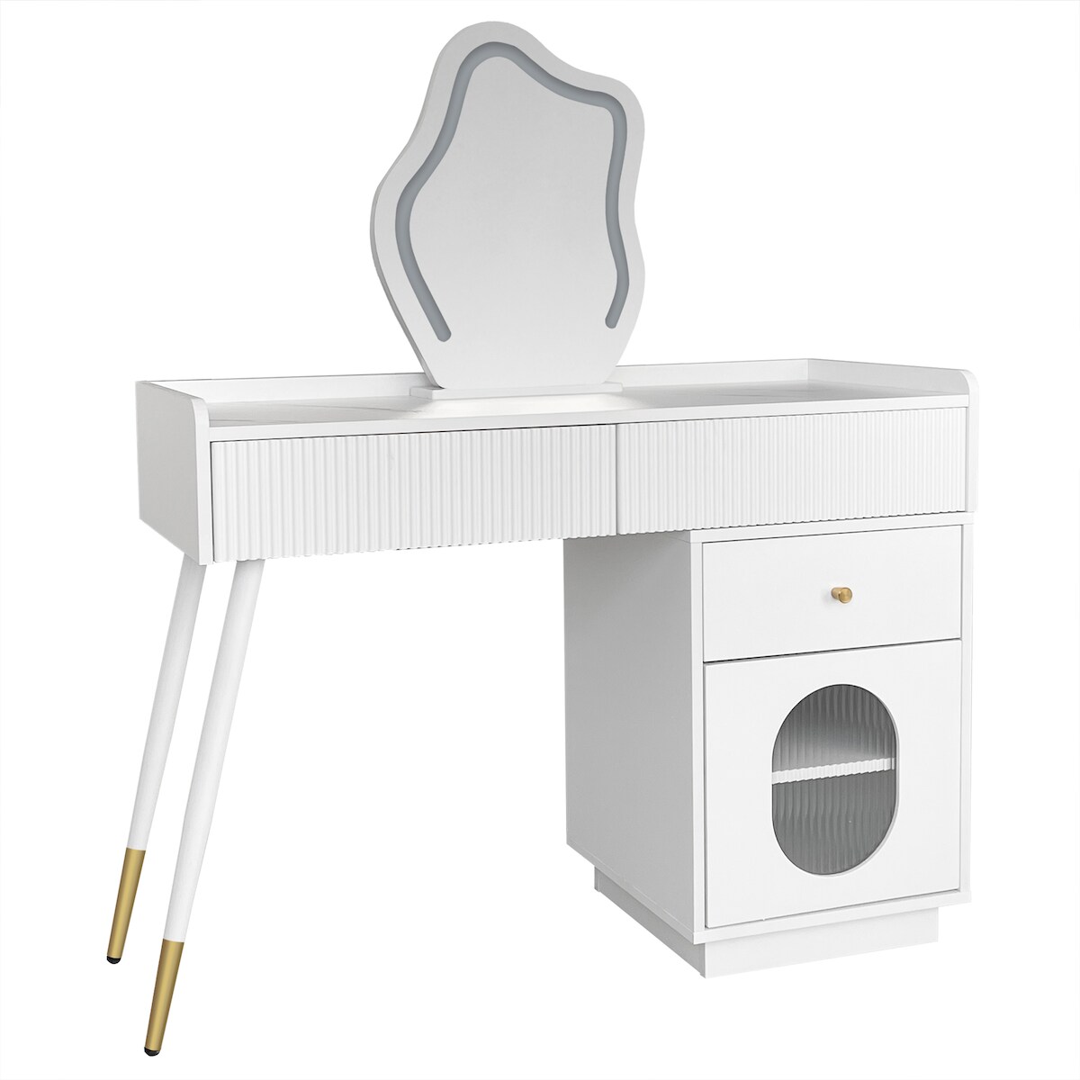 Schminktisch WELLTIME "Vicenza Schminktisch inkl. Spiegel", weiss (weiß melamin, weiß melamin, weiß melamin), B:90cm H:133cm T:39cm, Tische, Schminktisch, Schminktisch, 1 Schubkasten, Frisiertisch, Ornament weiß melamin, weiß melamin, weiß melamin B/H/T: