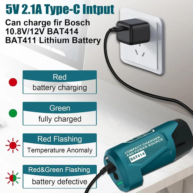 Ersatz-Stromquelle für Bosch 10,8V/12V Akku, USB-Anschluss & 12V DC Steckdose Tragbarer Akku-Adapter für beheizte Jacke