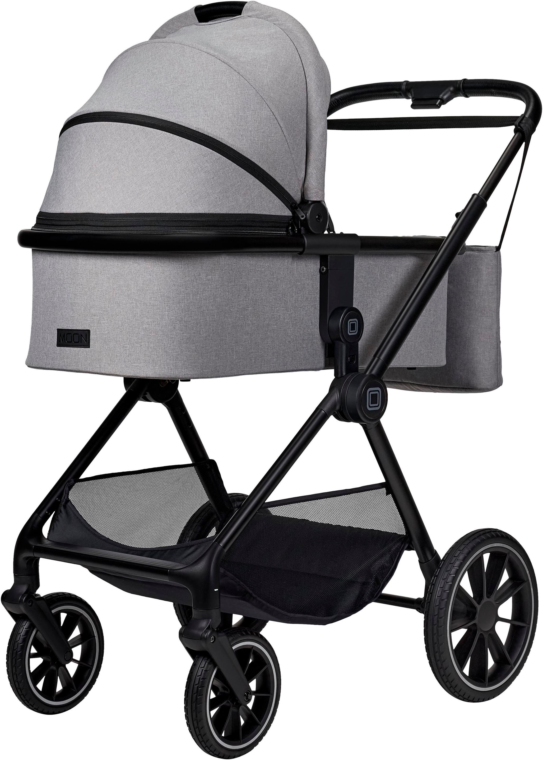 Kombi-Kinderwagen MOON "Clicc", Baby, grau (stone), Polyester, Kinderwagen, inkl. Fußsack und Wickeltasche
