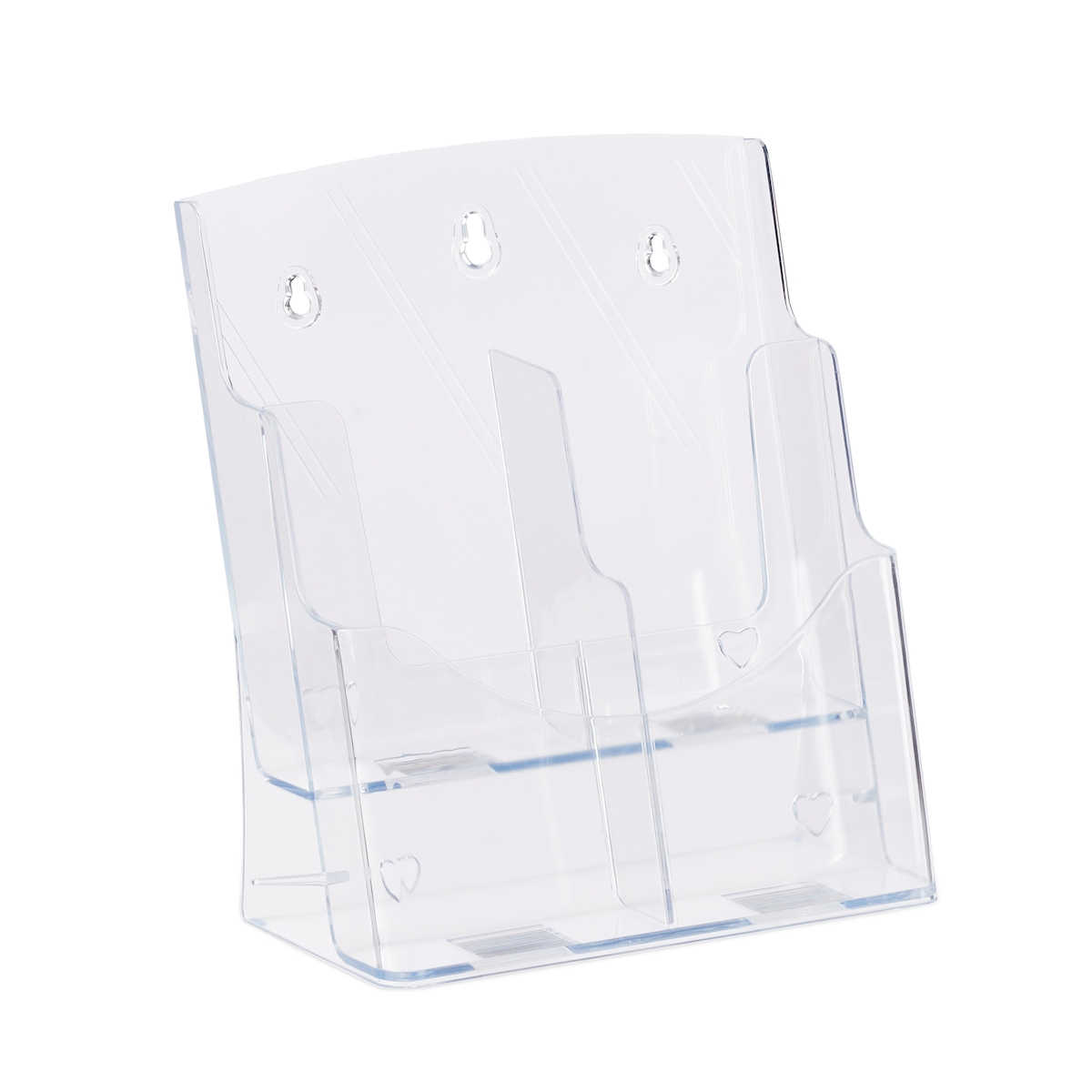 Relaxdays Prospekthalter A4 / DIN Lang, 2 Etagen, Acryl, Flyer Aufsteller Tisch & Wand, HBT: 27,5x24x15cm, transparent