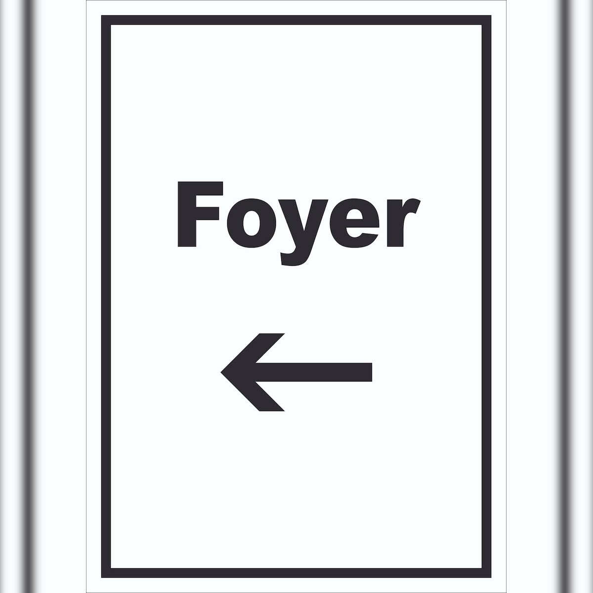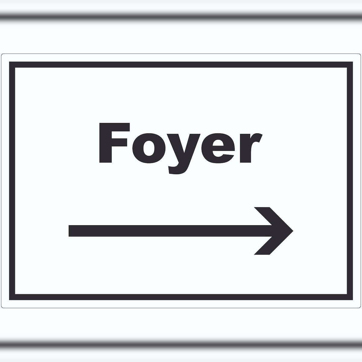 HB-Druck Foyer Schild mit Text und Richtungspfeil rechts Eingangshalle waagerecht A3 Rückseite selbstklebend