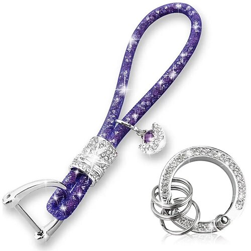 1 portachiavi di lusso per auto con strass, anti-smarrimento, da donna, con fibbia in argento, portachiavi per auto, portachiavi per telefono, accessori scintillanti