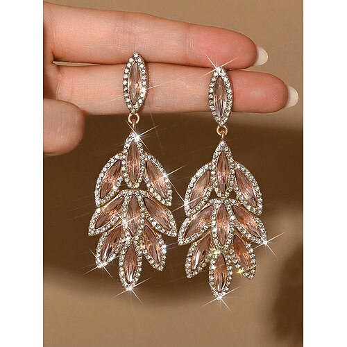 orecchini pendenti a forma di foglia di cristallo da donna - gioielli pendenti glamour, eleganti accessori scintillanti per le feste eventi serali