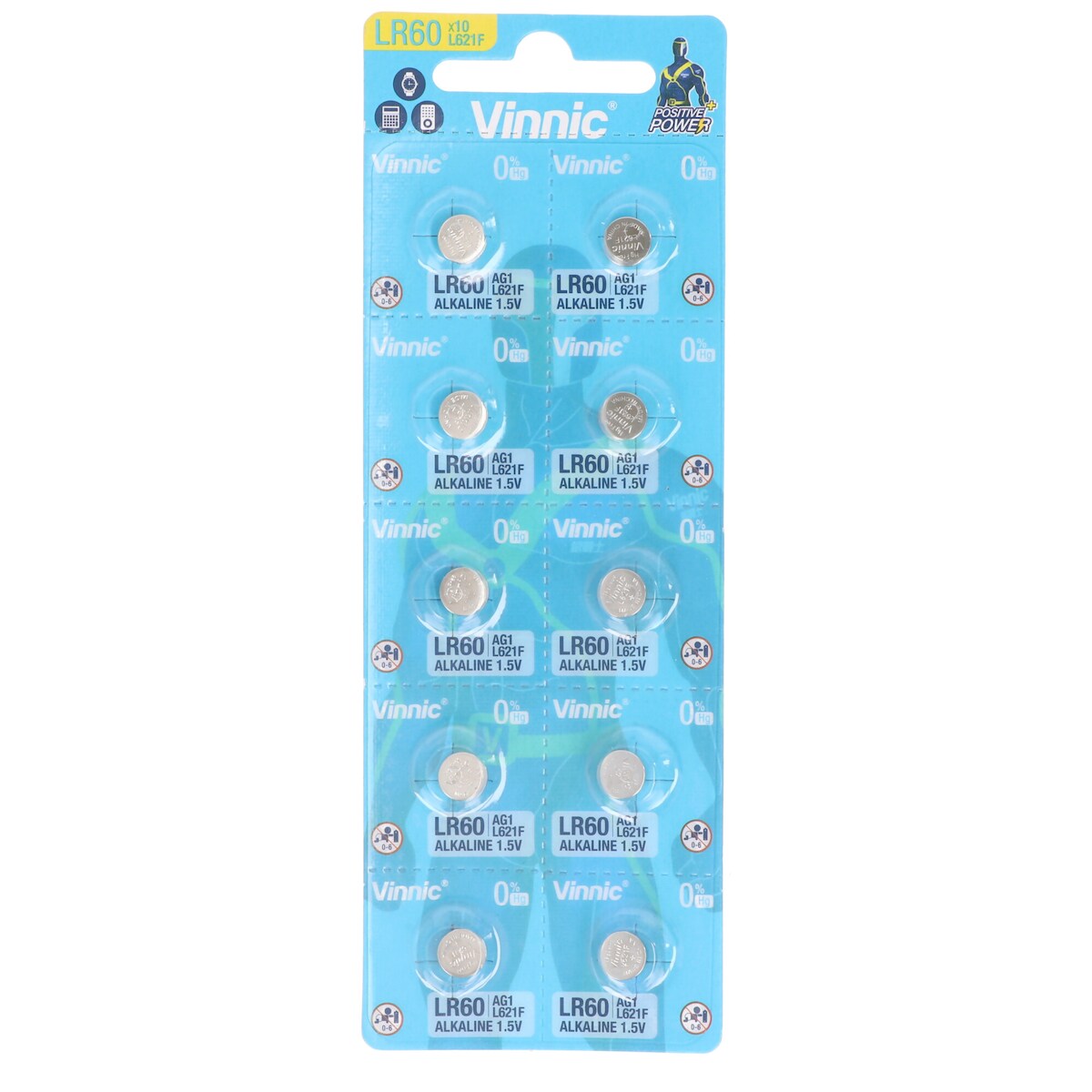 10 Stück AG1 Alkaline-Einweg-Batterie Type G1, AG1, L621, LR60, 6,8x6,8x2,15mm