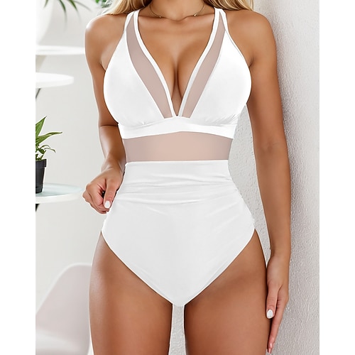 Per donna Costume da bagno Costumi da bagno One Piece Tinta unita Tropicale Protezione UV Alta elasticità Senza Maniche Costume da Bagno Rete Surf Immersione Snorkeling Estate