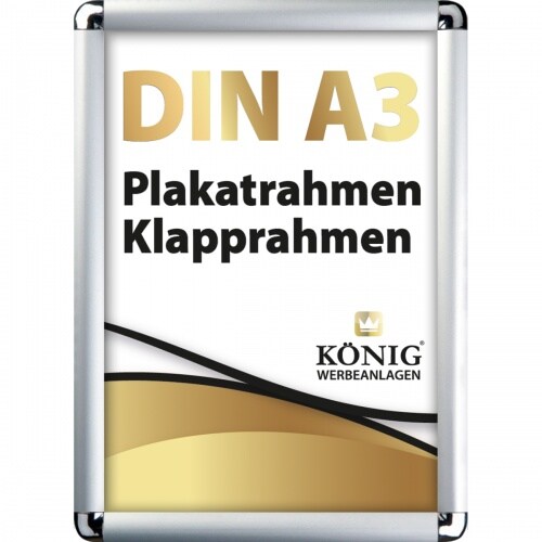Dreifke® Plakatrahmen DIN A3 | abgerundete Ecken | 25mm Alu Profil, silber | Alu Klapprahmen Wechselrahmen Posterrahmen Rahmen | Dreifke®