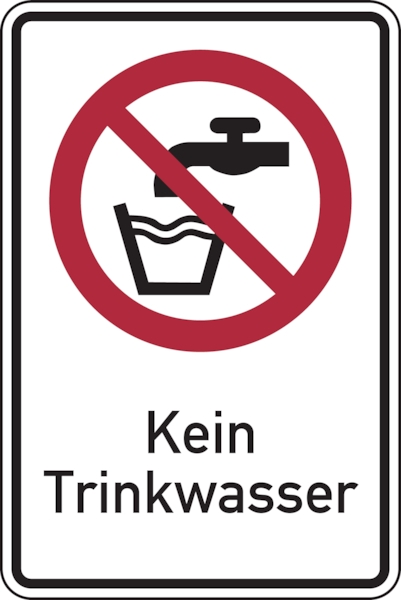 Verbotsschild, Kombischild, Kein Trinkwasser - ASR A1.3 (DIN EN ISO 7010) - 200x300x0.45 mm Aluminium geprägt