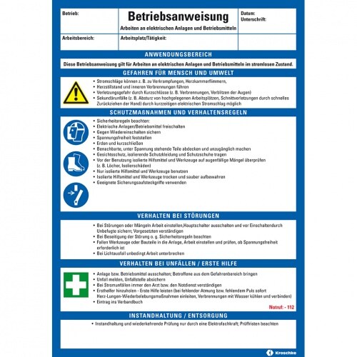 König Werbeanlagen Dreifke® Maschinenbetriebsanweisung Arbeiten..im stromlosen Zustand, Kunststoff, 210x297mm, ASR A1.3, DIN EN ISO 7010