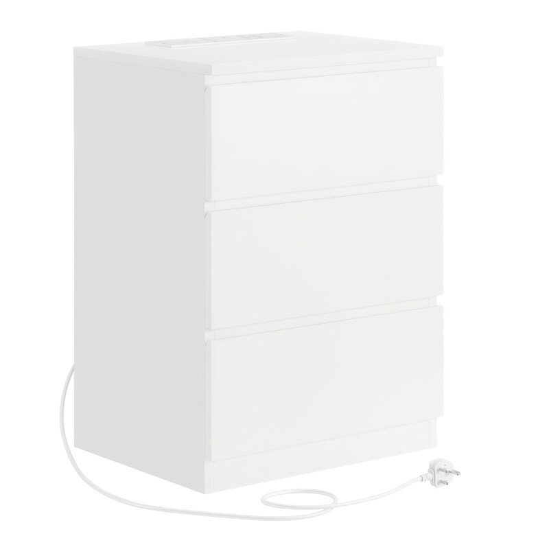 SONGMICSHOME Nightstand with Charging Station, Bedside Table, Side End Table with 3 Drawers, for Bedroom, White