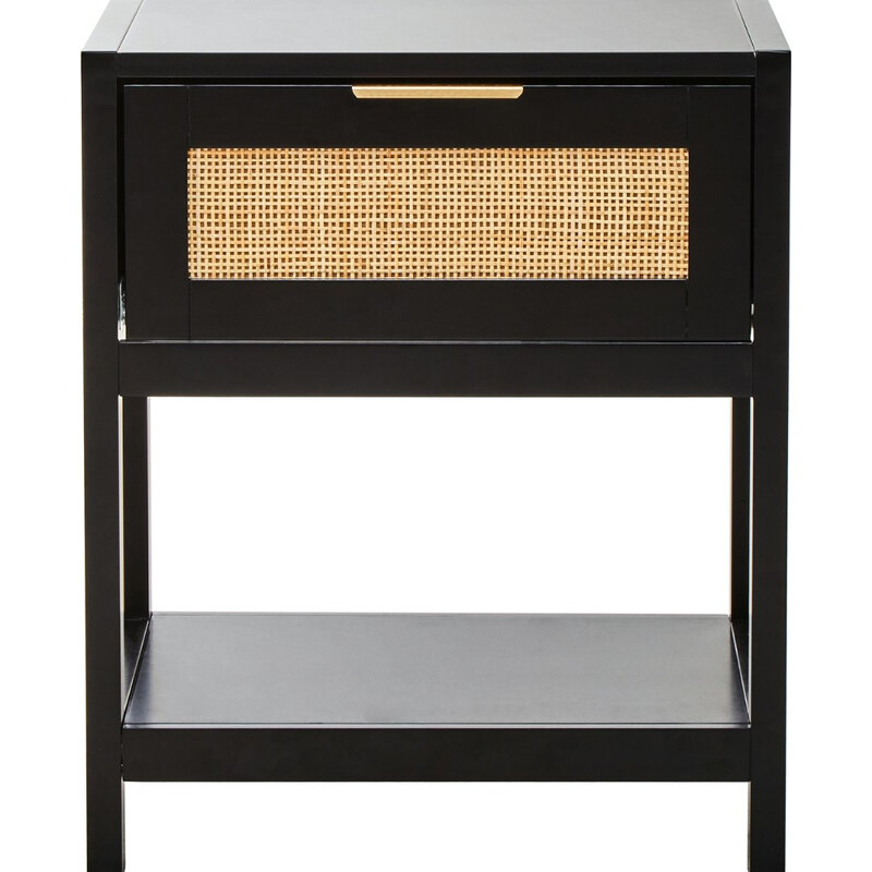 Interiors by Premier Bedside Table Sherman 1 Drawer Black/Rattan