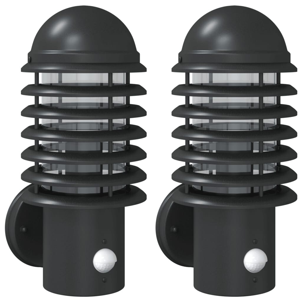 vidaXL Außenwandleuchten mit Bewegungsmelder 2 Stk. Schwarz Edelstahl