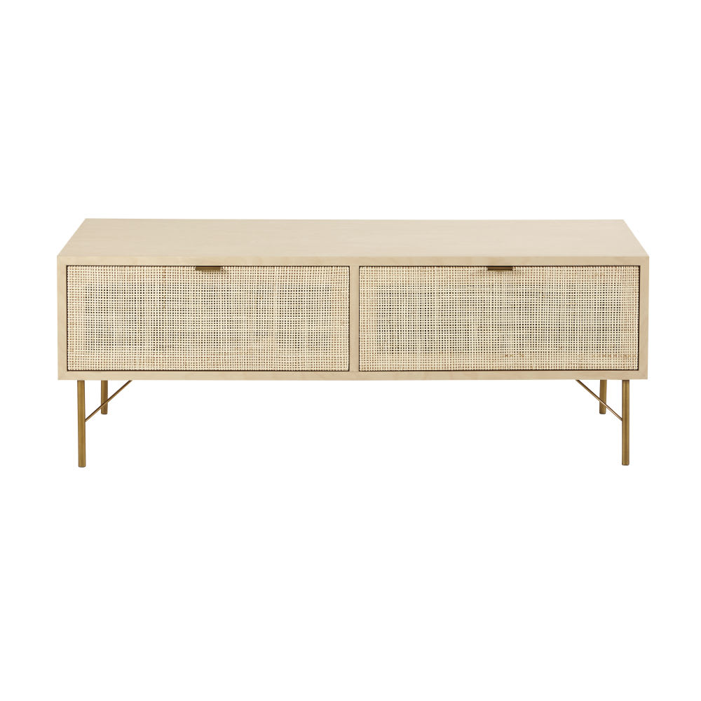 Nordlys Meuble TV 2 tiroirs en bois et rotin Marron 40x46x100cm